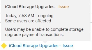 2月18日,苹果公司报告iCloud服务出现故障,部分用户在尝试使用iCloud时可能会收到验证错误信息,还有部分用户可能无法完成存储升级支付交易。